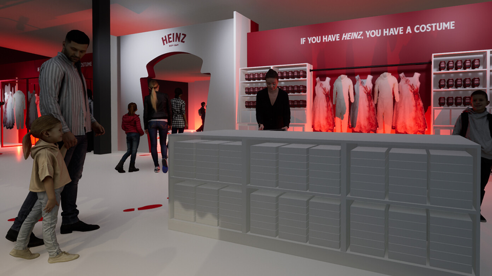 A Heinz poderia parar por aí, no entanto a pop up store mistura design e entretenimento do jeito que a data merece. Quem deixar a compra da fantasia para última hora encontrará opções como uma múmia ensanguentada, uma noiva cadáver ensanguentada e um cientista louco ensanguentado. O banho de sangue, ou melhor, de Ketchup de tomate, ficará por conta de “estações de gotejamento” interativas da loja.