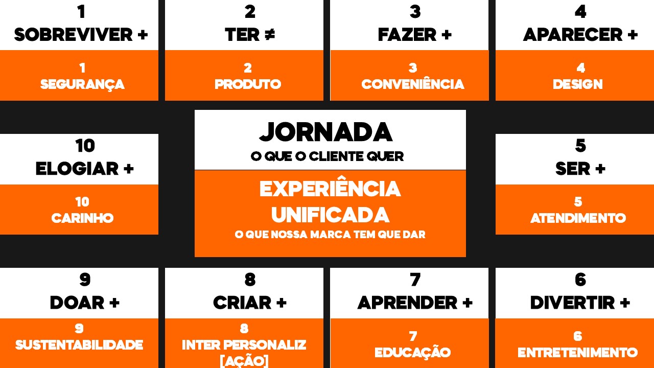A terceira parte do mapa mostra o que a marca deve oferecer — os dez pilares da experiência unificada.