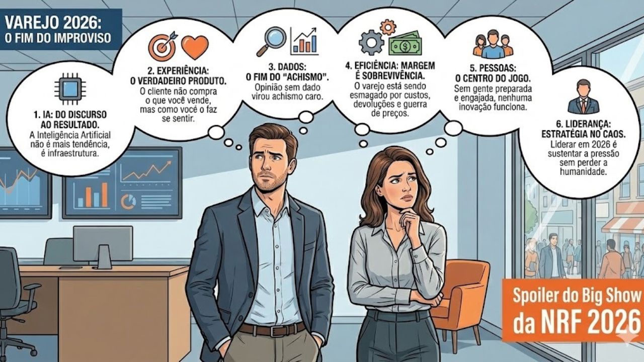 Não há mais espaço para improviso. O BIG SHOW DA NRF 2026 não fala de futuro distante. Ele fala do presente imediato. Do que já está acontecendo. Do que já está pressionando as empresas. E, principalmente, do que vai separar quem cresce de quem desaparece.