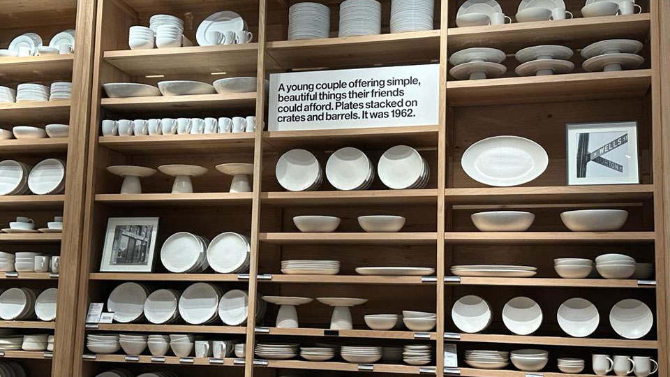 Já falamos sobre a loja conceito Crate & Barrel por aqui. A nova loja, inaugurada no final de 2023, reúne uma gama de serviços e experiências para o cliente: