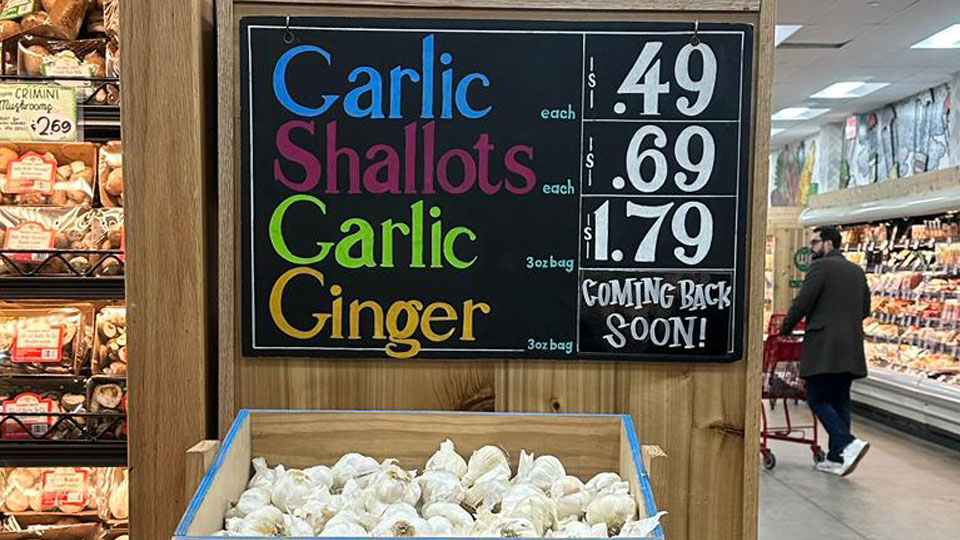 Praticamente nada nas lojas é impresso. Etiquetas de preços e placas desenhadas à mão dão um toque artístico e artesanal, criando uma atmosfera de mercado local, em vez de uma grande rede de supermercados. Nesse sentido, as prateleiras e os caixas de pagamento são de madeira, remetendo à simplicidade e ao rústico com ar de fazenda e feira.